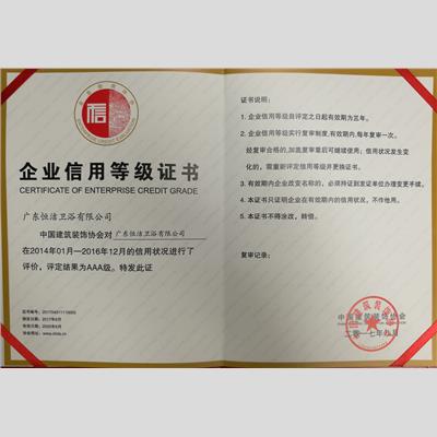 奖 项:企业信用等级证书AAA级-3年评审第一年