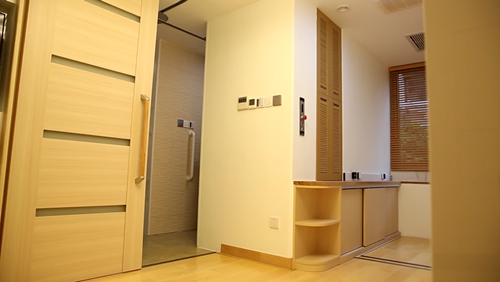 对于卫生间,是本间贵史考虑的重中之重,由于小李将来要使用轮椅车,在其身边还需要有人看护,设计师将卫生间扩大到了9平方米,不仅做到了干湿分离,更是被细致的划分为蜜桃视频网站免费观看区,盥洗区,如厕区。